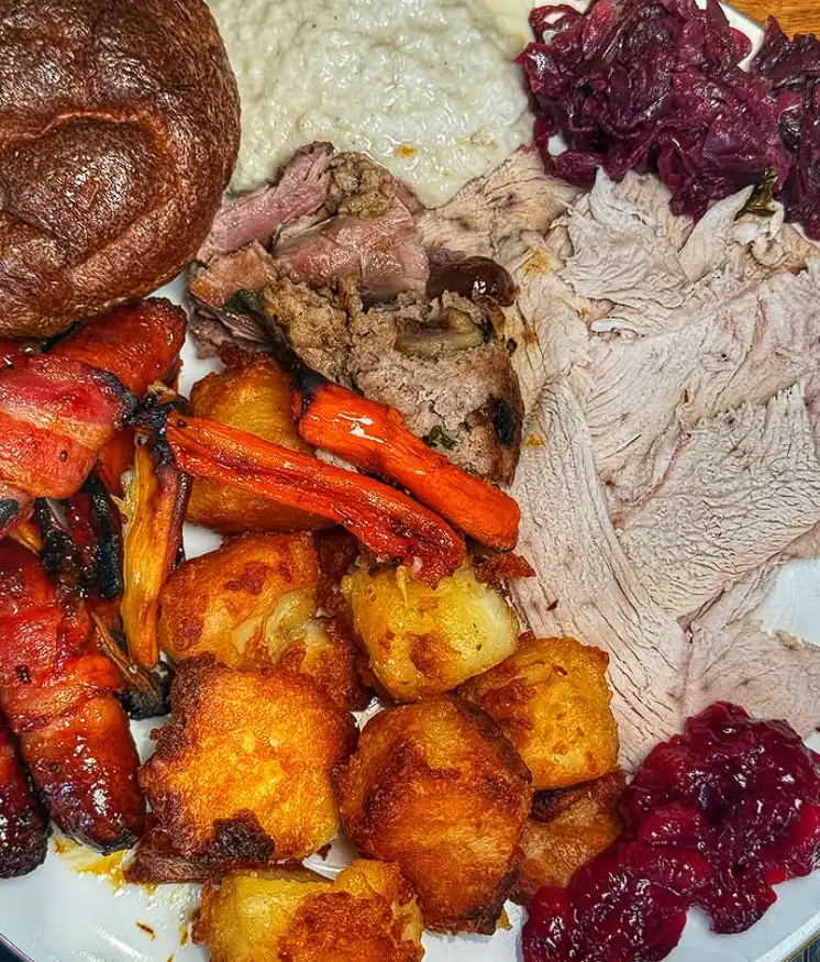 We hope you all had an amazing day! Here’s my plate piled high with all the festive essentials: turkey, Yorkshire pudding, honey& mustard carrots, parsnips & pigs in blankets, red cabbage, bread sauce, cranberry sauce, crispy roast potatoes (the ultimate star of the show), and a generous drizzle of gravy.