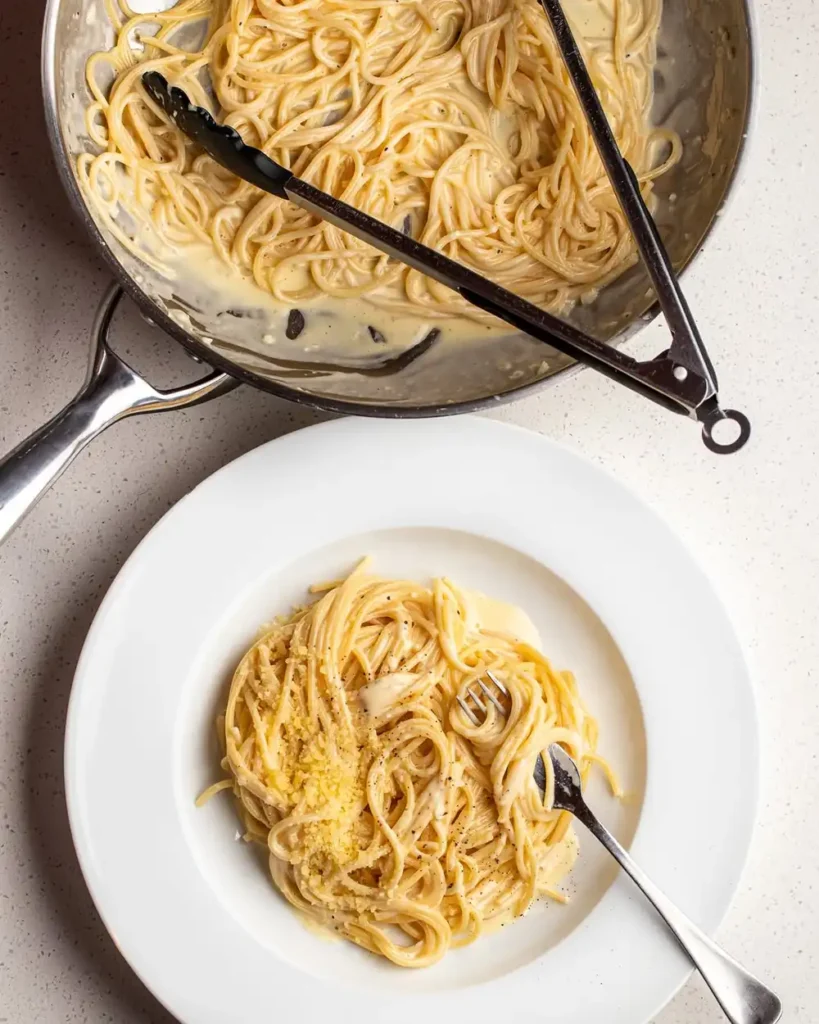 The secret is the pasta water. It thins out the sauce just enough so you’re not eating a heavy cream bomb but still get that comforting creamy texture.